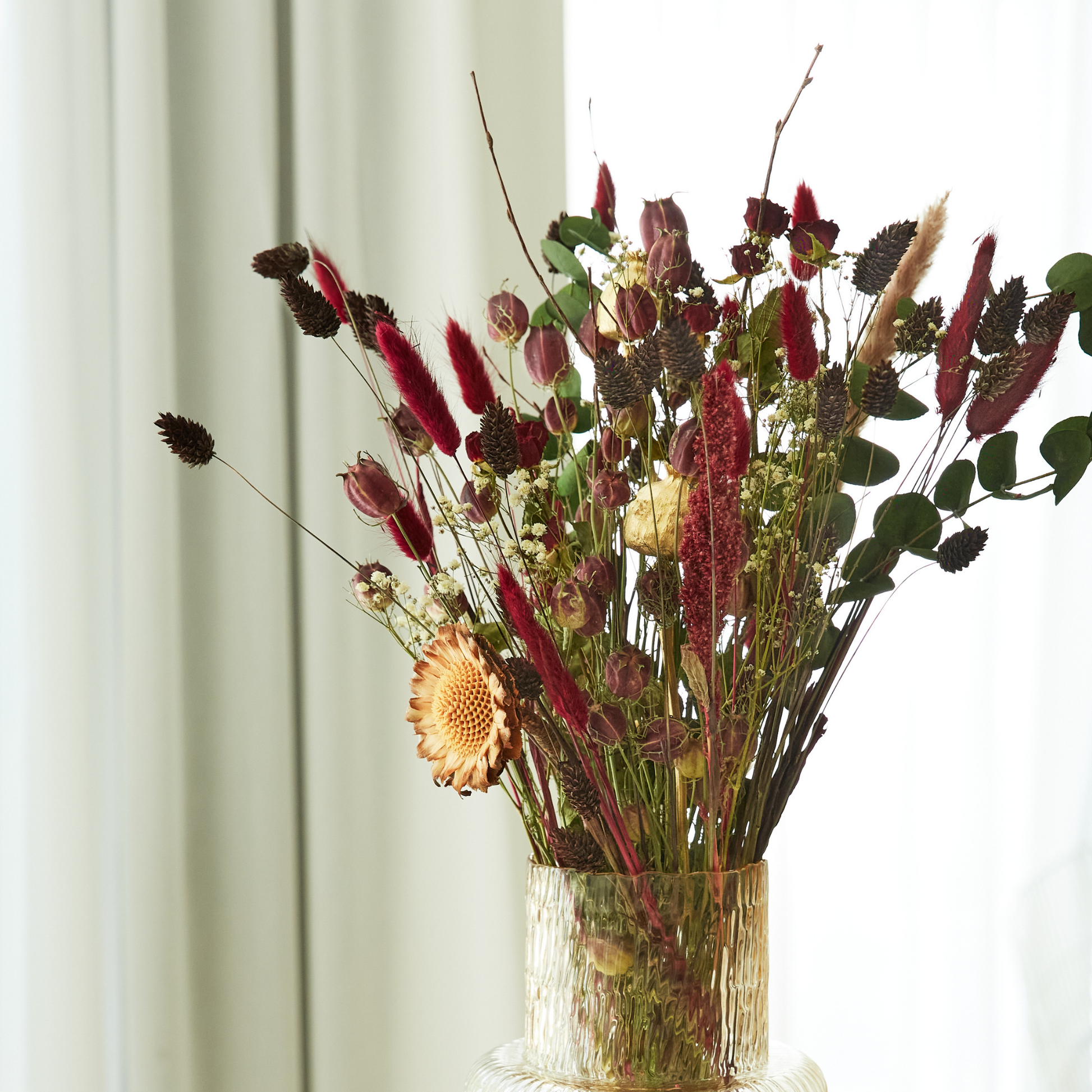 Enrich your space with the beauty of dried flowers, carefully handcrafted and sustainably grown for a touch of eco-conscious elegance. Each piece is thoughtfully curated with love, resulting in a stunning composition that captures the essence of natural beauty.